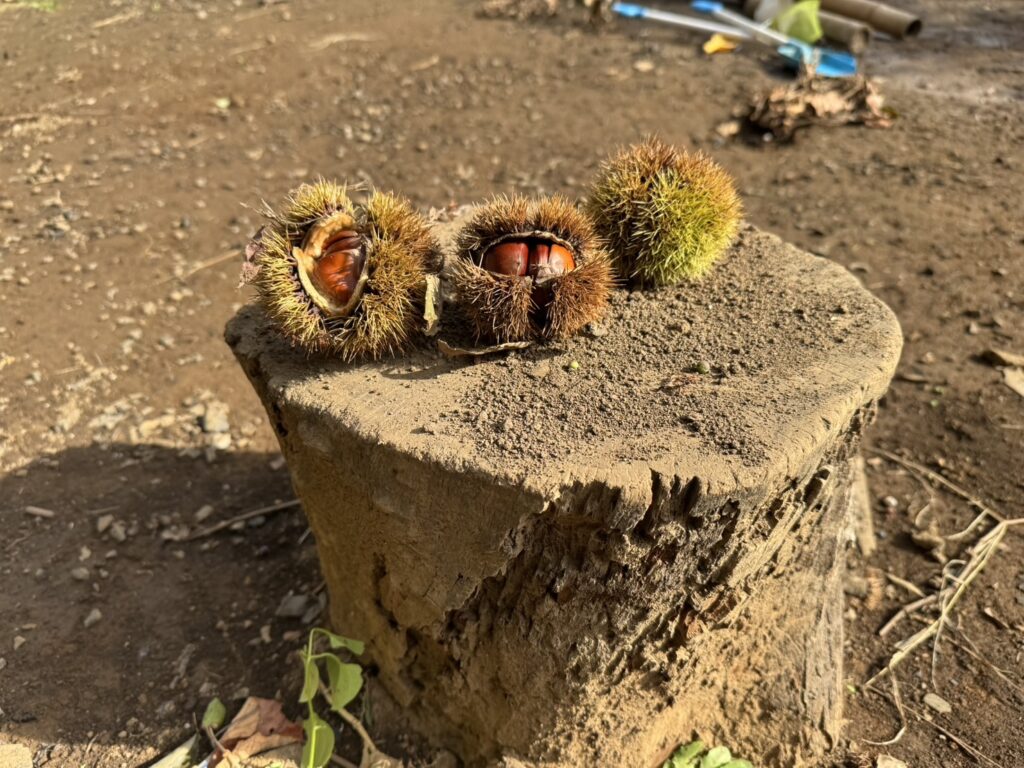 今は、色々な野菜の種を植えたり、穂が垂れ始めた稲を眺めたり栗を食べる姿があります。